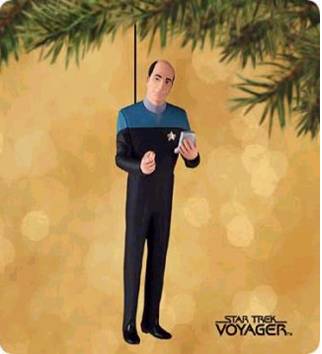 This Keepsake Ornament adds a bit of magic to your holidays with its red and blue lights – and a message from the captian of the U.S.S. Voyager:
